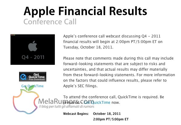 Come ogni trimestre, anche per il Q4 Apple presenterà i suoi risultati fiscali.