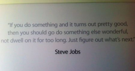 L’Apple Campus è il nome che Steve ha voluto dare alla sede centrale di Apple a Cupertino (California) e proprio qui i dipendenti stanno allestendo dei poster e delle citazioni celebri del CEO fondatore di Apple.