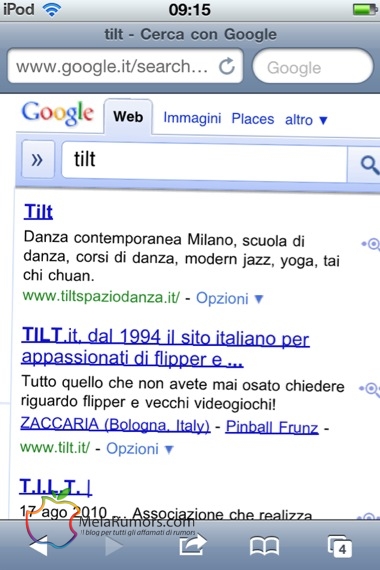 Se provate a ricercare su Google la parola “tilt” da un dispositivo iOS otterrete una schermata simile a quella in alto.